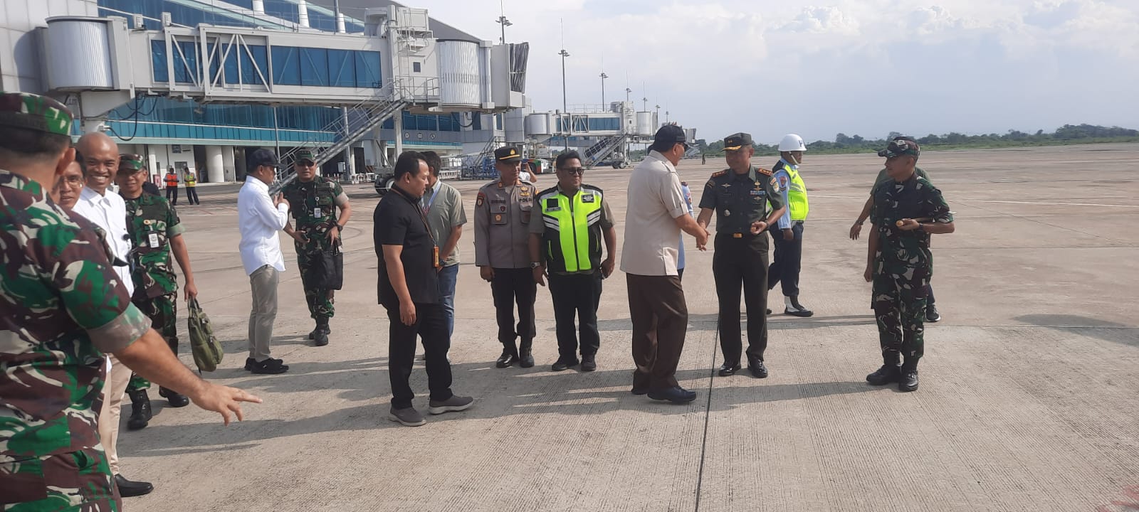 Menhan RI beserta rombongan tiba menggunakan pesawat TNI AU NAS 332 dengan nomor registrasi H-3205 dan mendarat dengan aman pada pukul 13.48 WIB. Setelah proses unboarding, rombongan langsung melaksanakan peninjauan fasilitas bandara dan dilanjutkan dengan rapat koordinasi.
