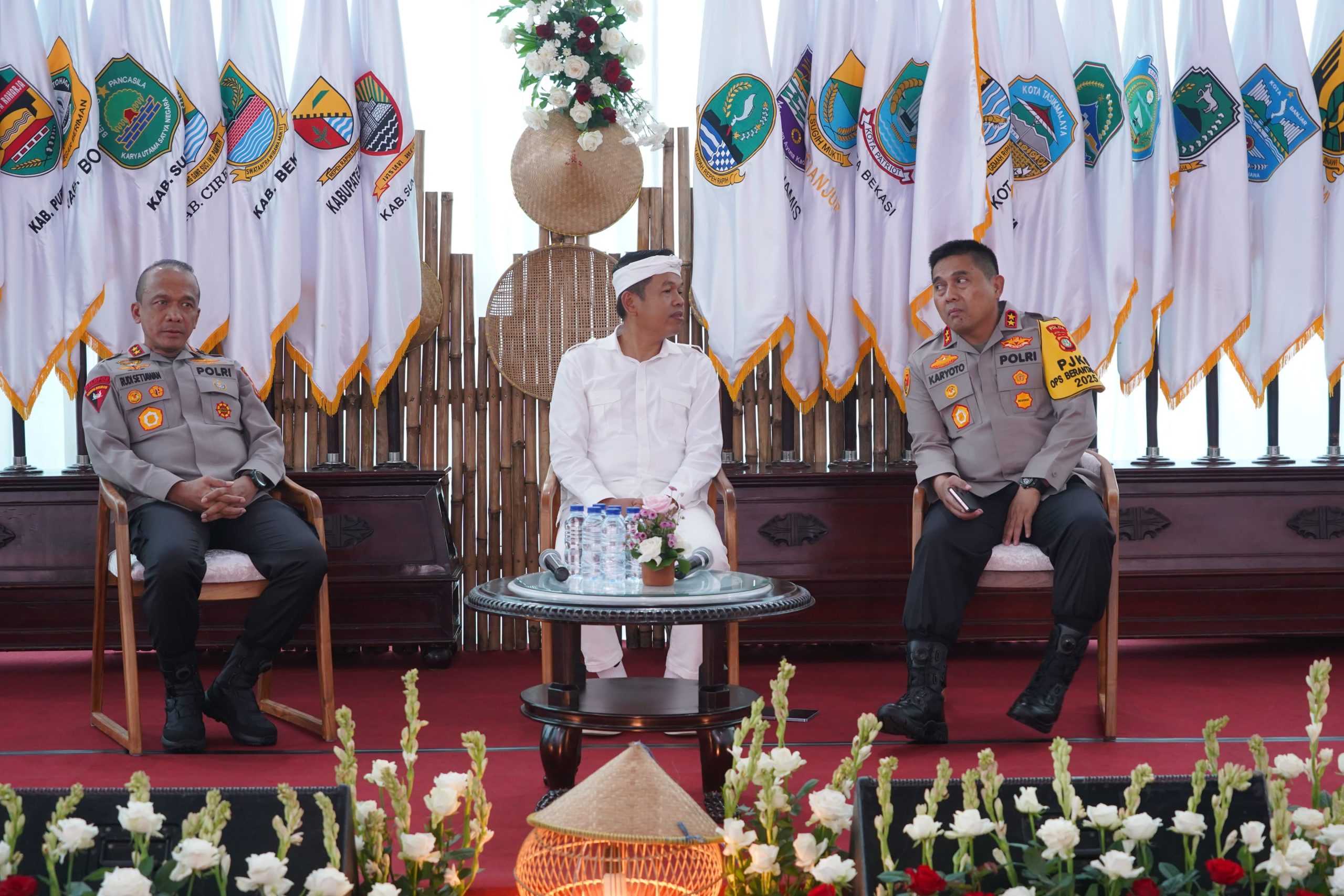 Sinergitas dan kolaborasi siap dihadirkan di wilayah hukum Jawa Barat dengan mengajak stakeholder terkait, seperti Polda Metro Jaya dan Pemerintah Provinsi Jawa Barat. Hadir dalam kegiatan rapat koordinasi dan penandatanganan nota kesepakatan serta komitmen bersama tentang sinergi bidang keamanan, ketentraman dan ketertiban umum untuk mendukung percepatan pembangunan daerah di Jabar, antara lain Kapolda Jabar, Irjen Pol Rudi Setiawan, Kapolda Metro Jaya, Irjen Pol Karyoto, Gubernur Jabar, Dedi Mulyadi, Sekda Jabar, Ketua DPRD Jabar, OPD di Provinsi Jabar, PJU Polda Jabar, para bupati dan wali kota, kapolres/kapolresta/kapolrestabes, OPD kota/kabupaten, hingga para tamu dari Polda Metro Jaya, Jumat (16/5/2025) di Gedung Pakuan.