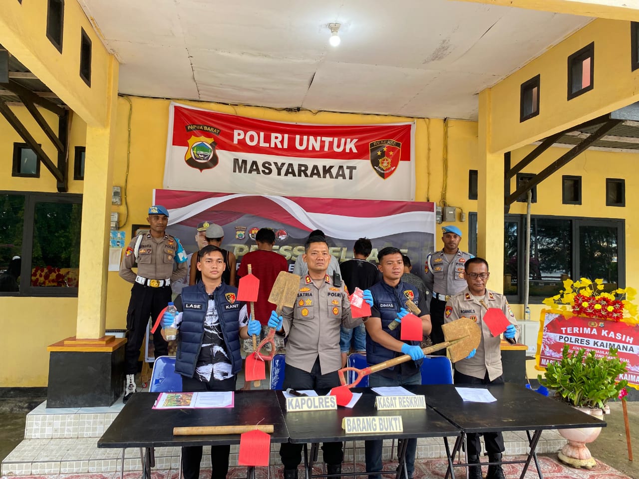 Kegiatan Press Release yang dipimpin langsung Kapolres Kaimana AKBP Satria Dwi Dharma, S.I.K. ini didampingi Kasat Reskrim Polres Kaimana IPTU Tri Sukma Adimasworo, Kasi Propam Polres Kaimana IPDA Ronny Sabandar, dan IPDA Lese selaku Kanit Tipiter Sat Reskrim Polres Kaimana.