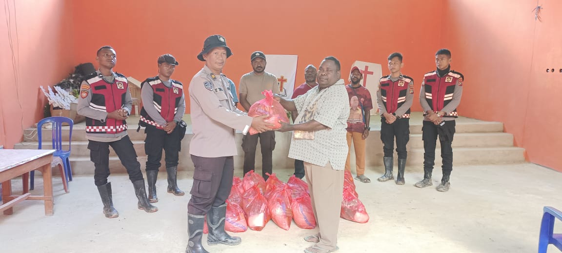 MANOKWARI PB, BUSERJATIM.COM GROUP – Polres Pegunungan Arfak menyalurkan bantuan sosial berupa sembako kepada warga terdampak bencana tanah longsor di Kampung Jim, Distrik Catubouw, Kabupaten Pegunungan Arfak. Kegiatan penyaluran bantuan berlangsung pada Sabtu (24/5) pukul 10.00 WIT, bertempat di Gereja Jemaat Petrus Kampung Jim.