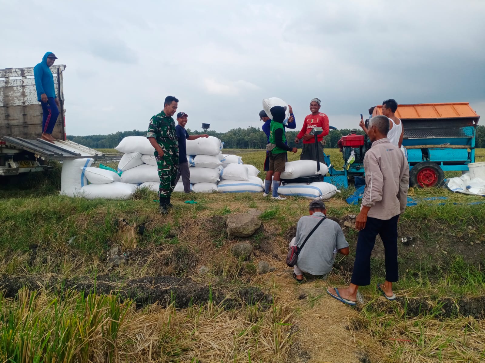 Sertu Anggoro menyampaikan bahwa kehadiran TNI melalui Babinsa di lapangan bertujuan untuk memberikan motivasi dan dukungan kepada petani, agar hasil panen bisa terserap maksimal serta membantu stabilitas harga gabah.