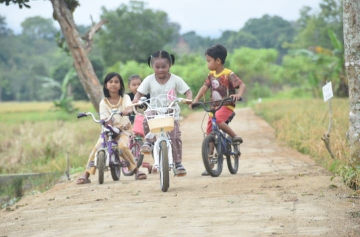 Jalan baru yang dibangun melalui program ini kini menjadi saksi bisu tawa riang dan permainan mereka.