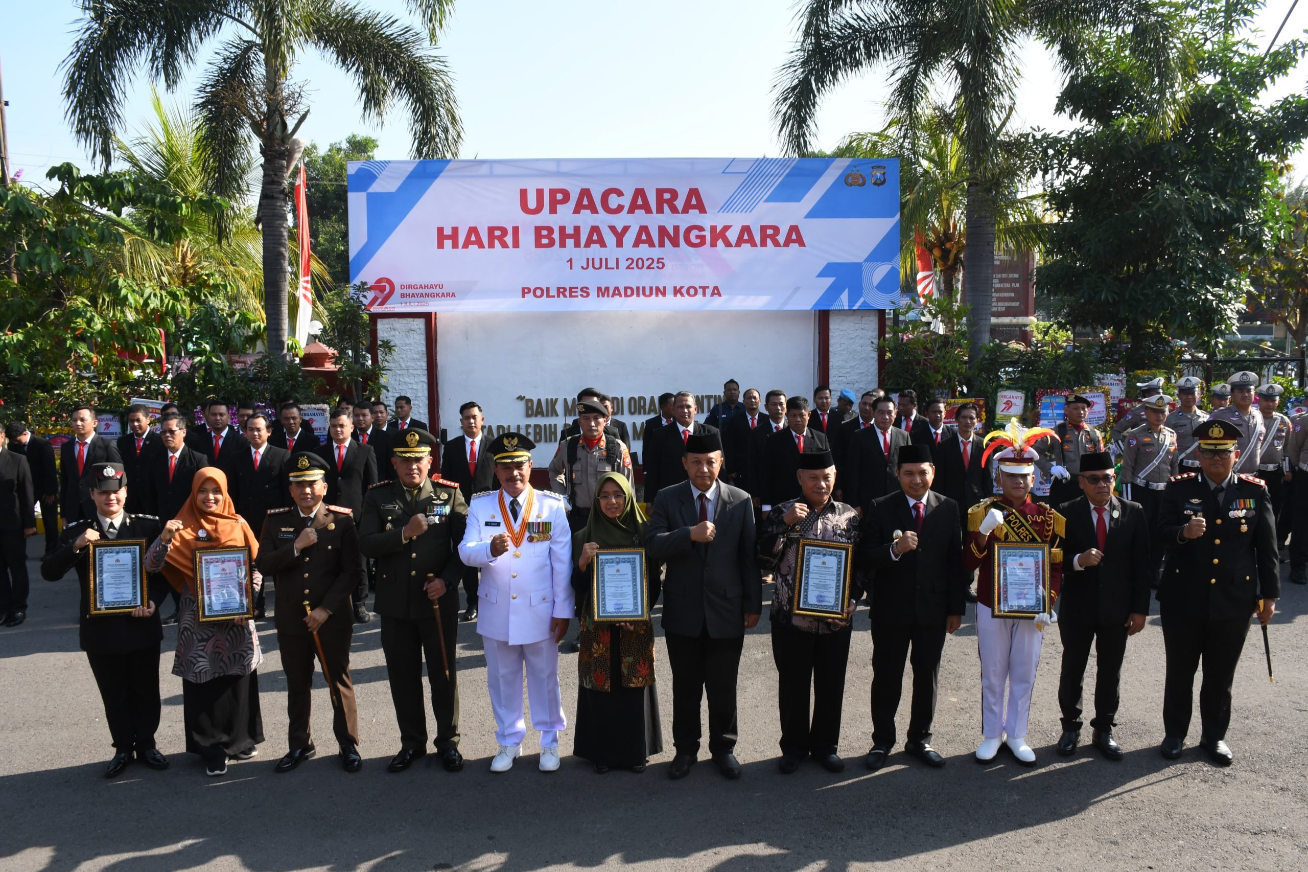 Dalam amanatnya, Kapolda Jawa Timur, Irjen Pol Drs. Nanang Avianto, M.Si., yang dibacakan oleh Walikota Madiun, menyampaikan bahwa momentum Hari Bhayangkara adalah saat yang tepat untuk memperkuat sinergi antara Polri dan seluruh elemen masyarakat demi menciptakan lingkungan yang aman dan kondusif.