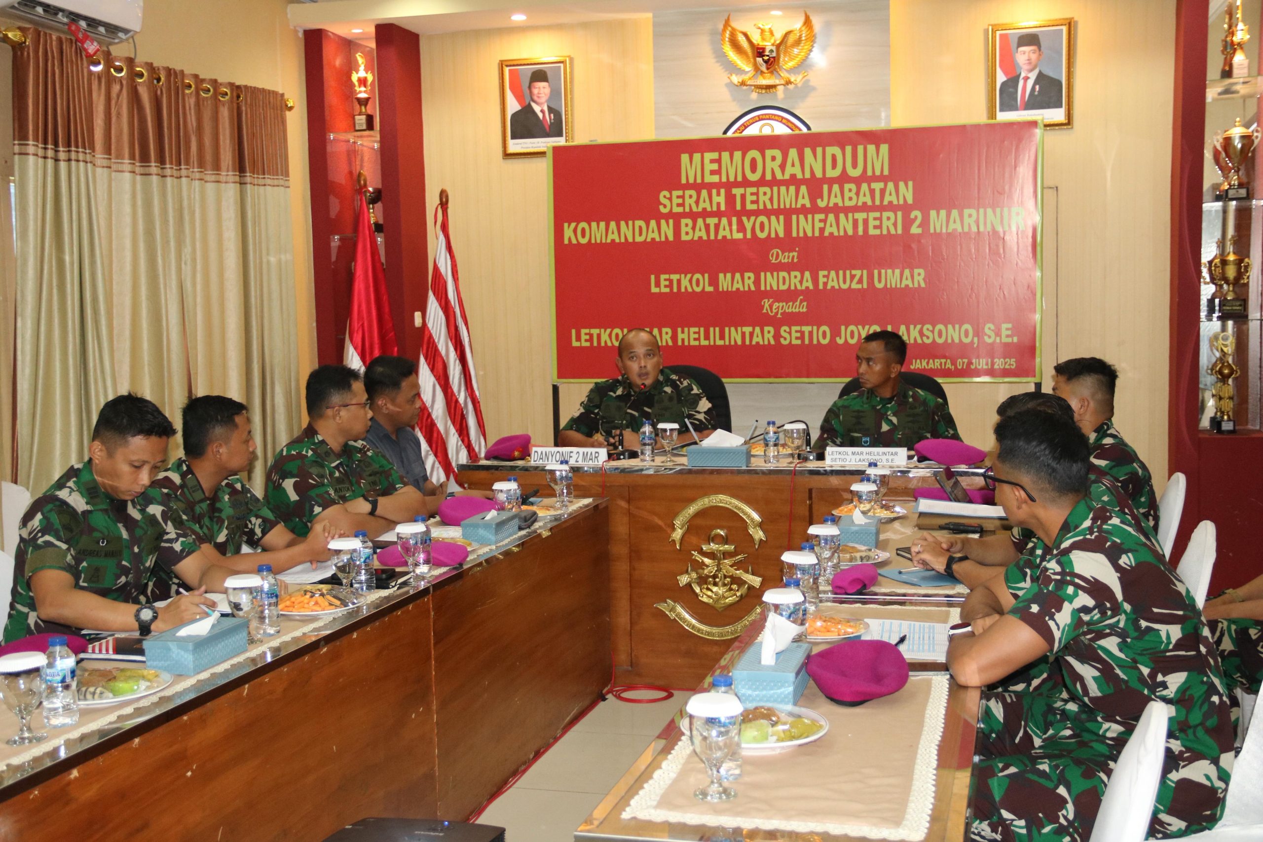 JAKARTA, BUSERJATIM.COM GROUP (16/7/25) – Dalam rangka proses alih kepemimpinan yang menjadi bagian dari tradisi dan mekanisme organisasi militer, Komandan Batalyon Infanteri 2 Marinir (Danyonif 2 Mar) Letkol Marinir Indra Fauzi Umar secara resmi melaksanakan kegiatan memorandum di Ruang Rapat Batalyon Infanteri 2 Marinir, Kesatrian Marinir Hartono, Cilandak, Jakarta Selatan, beberapa hari lalu, (07/07).