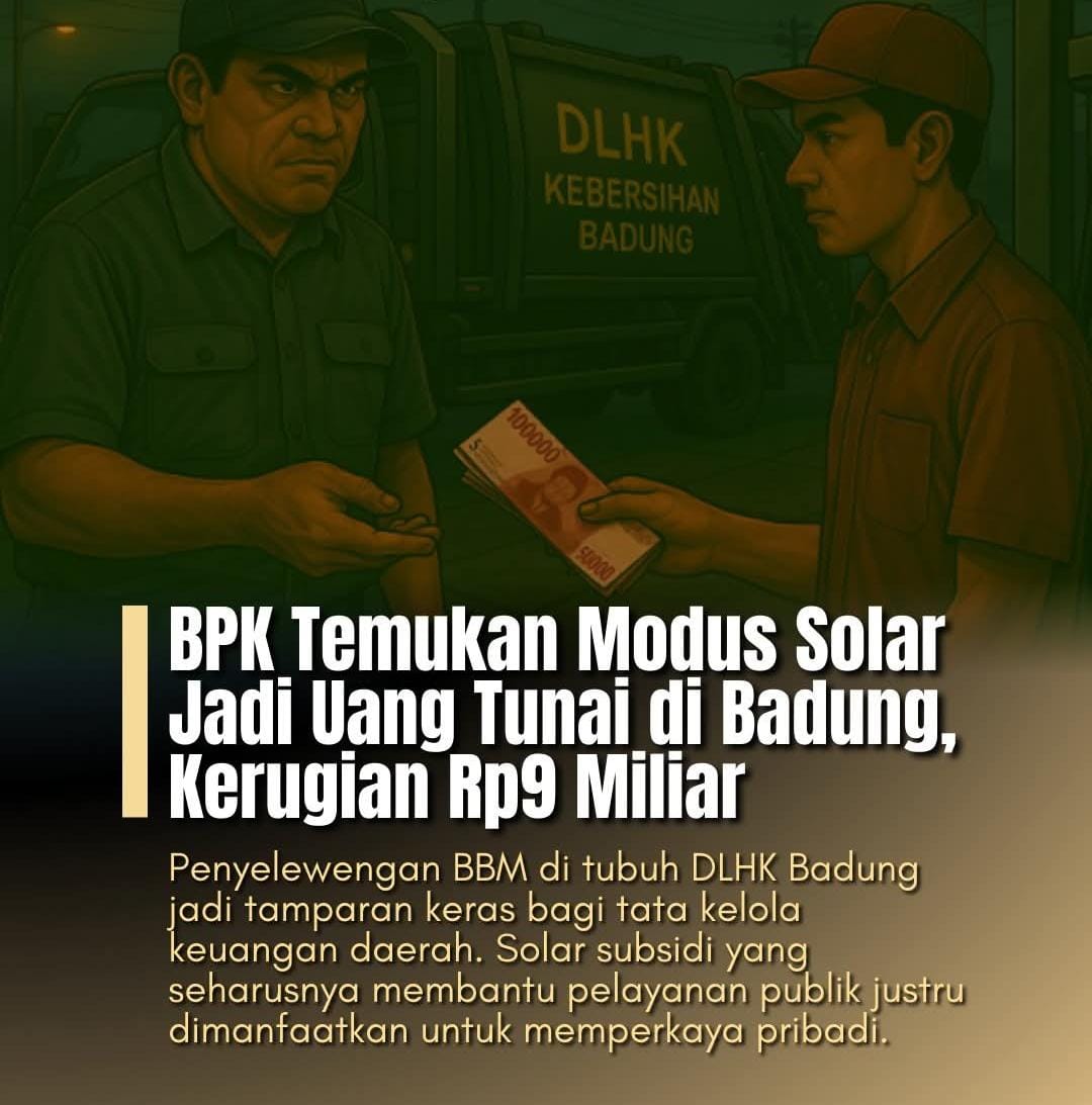 BADUNG BALI, BUSERJATIM.COM GROUP/ 19 juli 2025 – Pemeriksaan Laporan Keuangan Pemerintah Kabupaten Badung tahun 2024 oleh Badan Pemeriksa Keuangan (BPK) RI Perwakilan Bali menguak temuan serius di tubuh Dinas Lingkungan Hidup dan Kebersihan (DLHK) Badung. Dugaan penyelewengan penggunaan bahan bakar solar oleh armada truk DLHK mencuat, dengan potensi kerugian negara mencapai Rp9 miliar.