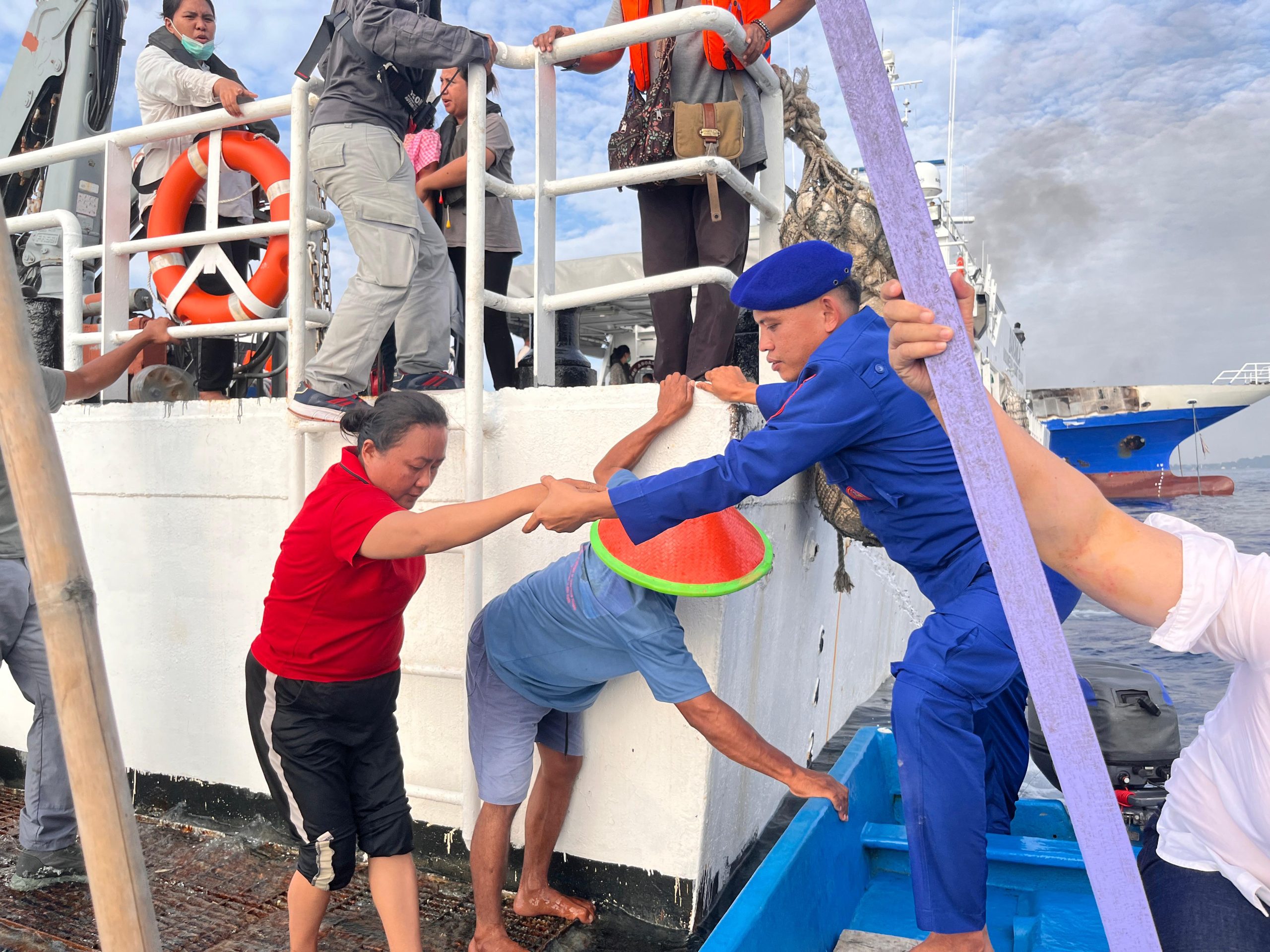Kobaran api memicu kepanikan massal. Beberapa penumpang nekat terjun ke laut menggunakan pelampung demi menyelamatkan diri. Nelayan setempat pun turut membantu mengevakuasi para korban ke Pulau Talise dan Pulau Gangga dalam aksi kemanusiaan yang penuh keberanian.