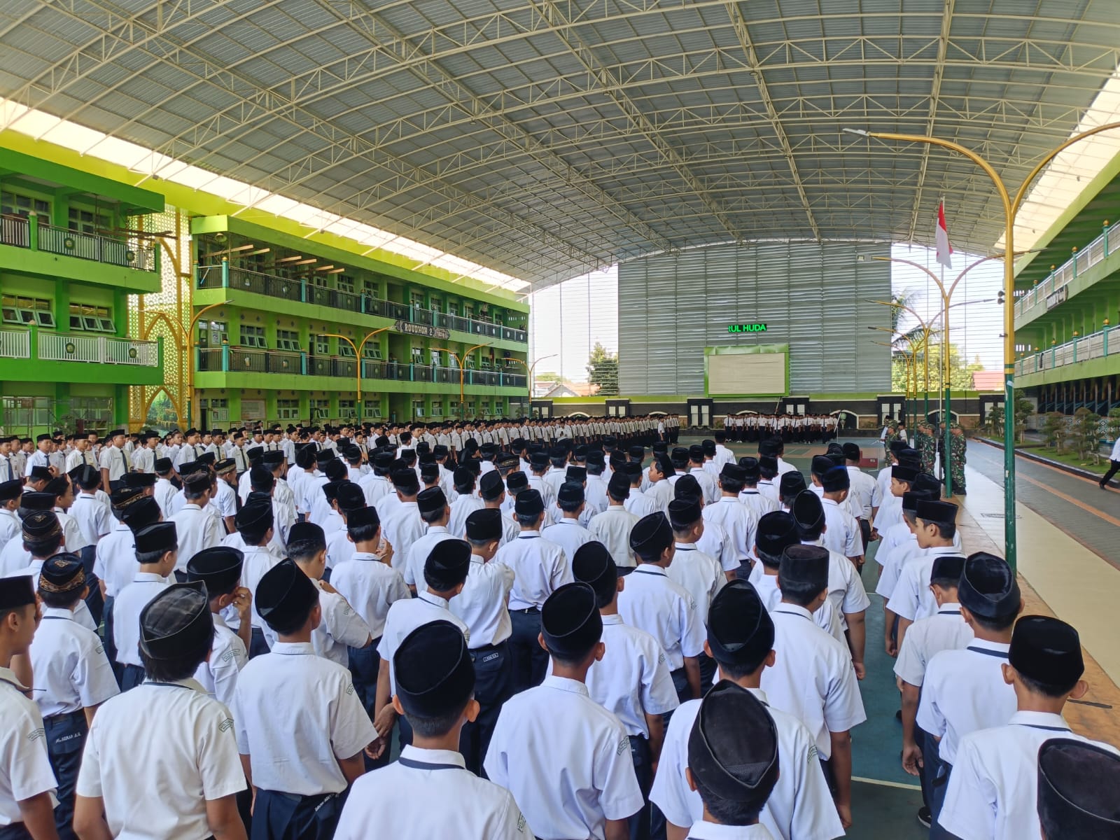 PONOROGO,BUSERJATIM.COM GROUP,-Sudah satu minggu lebih anggota Kodim 0802/Ponorogo melatih baris berbaris kepada para siswa siswi di berbagai sekolah termasuk para Santri yang ada di Pondok Pesantren (Ponpes) yang ada di wilayah Kabupaten Ponorogo, selasa (22/07/2025).