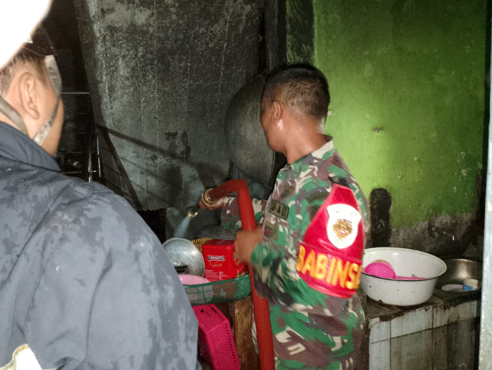 TNI Sigap, Anggota Koramil Majalengka Bersama Tim Gabungan Padamkan Kebakaran Rumah Warga