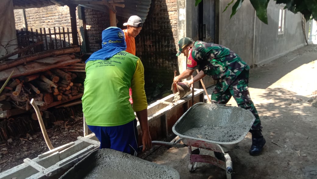 “ Alhamdulillah hari ini kami melaksanakan kegiatan Komsos di wilayah desa binaan (Dukuh Krajan) membantu Bapak Sugeng yang sedang membangun rumah dan saat ini sedang dalam tahap pengecoran tembok samping, “ ujar Babinsa Desa Cekok.