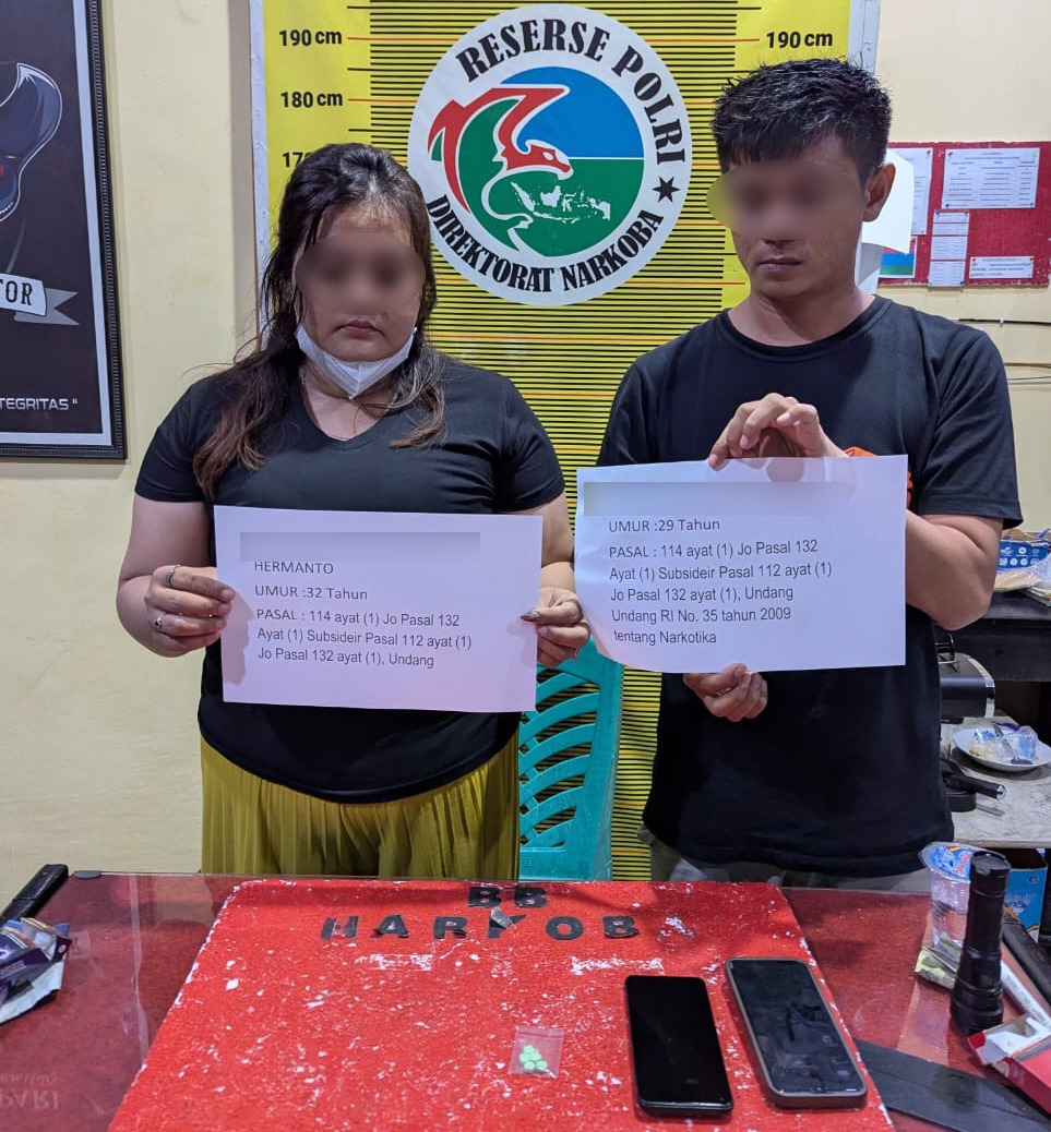 Merangin – Satuan Reserse Narkoba Polres Merangin berhasil mengamankan dua orang pelaku, masing-masing seorang wanita dan seorang pria, diamankan terkait kepemilikan pil diduga ekstasi dan alat hisap sabu.