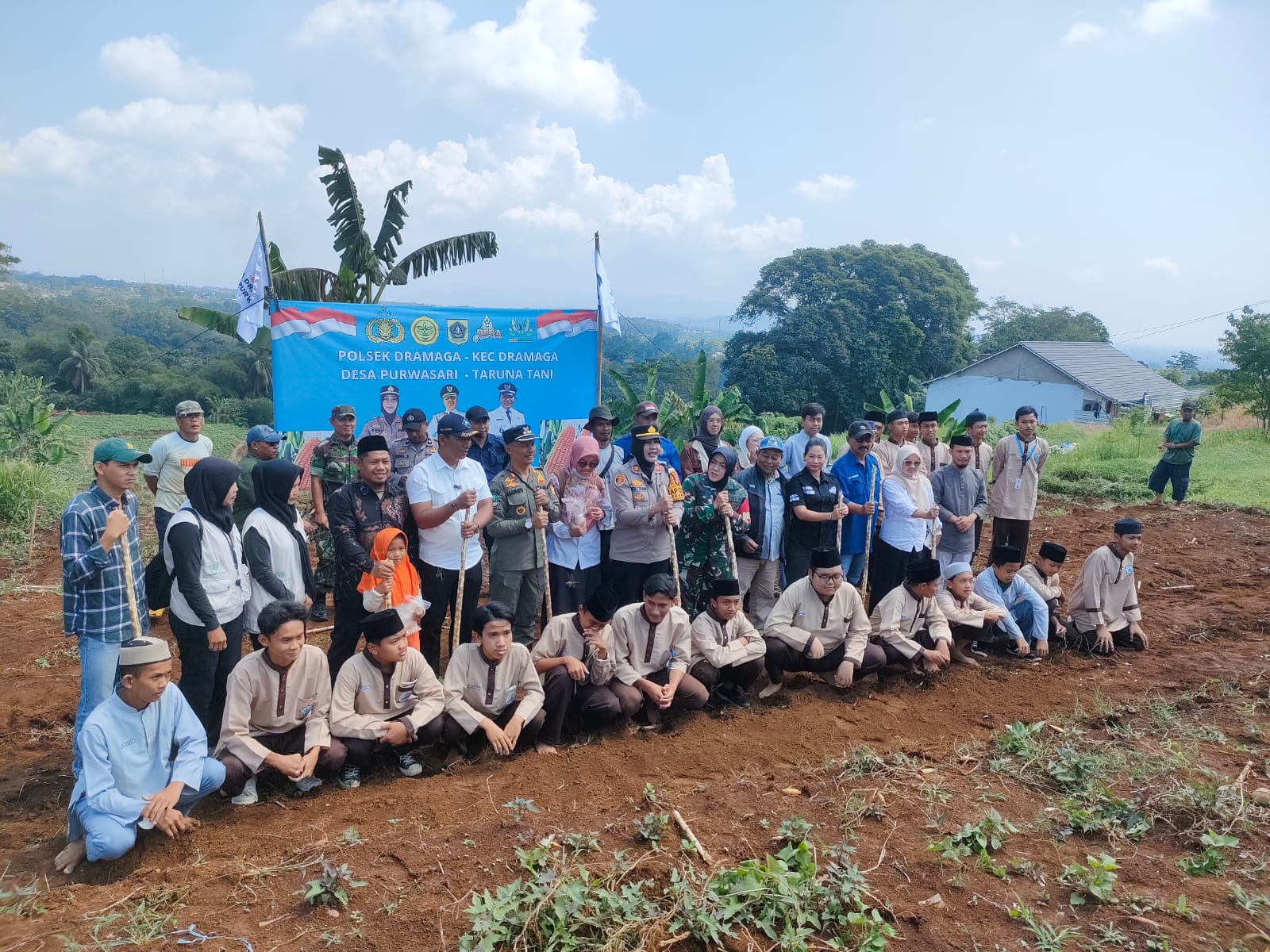 MATAMAJA GROUP || POLRES BOGOR – Kapolsek Dramaga Polres Bogor, IPTU Desi Triana.,S.H.,M.H Bersama Forkompincam Kecamatan Dramaga melaksanakan Kegiatan Penanaman Jagung Hybrida di Ponpes Zahid Tshabit wilayah desa purwasari Terkait Ketahanan Pangan Dalam Mendukung Asta Cita Presiden RI Dan Wakil Presiden RI, Penanaman Jagung Seluas 1 Hektar Serentak Wilayah Kecamatan Dramaga Di kabupaten Bogor. Rabu, (06/08/2025)