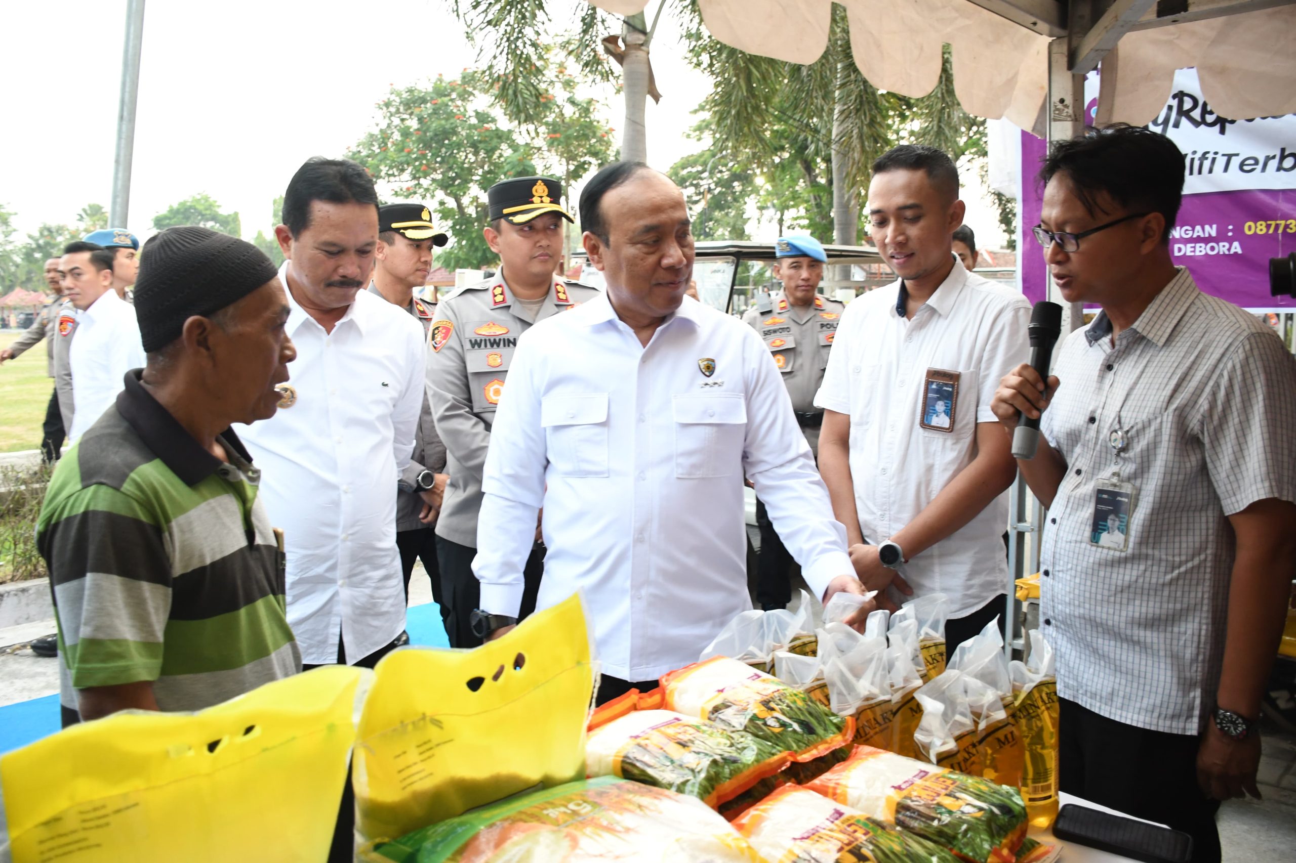 KOTA MADIUN, BUSERJATIM.COM GROUP – Kepolisian Republik Indonesia (Polri) memperkuat peran aktifnya dalam menekan inflasi melalui Gerakan Pasar Murah (GPM) di Lapak Kampir, Kelurahan Kanigoro (8/8/2025). Kegiatan ini dihadiri langsung oleh Irwasum Polri Komjenpol Prof. Dr. Dedi Prasetyo, SH, M.Hum, MSi, MM bersama Wali Kota Madiun Dr. Drs. H. Maidi dan jajaran Forkopimda. Dalam kesempatan ini, Komjenpol Dedi Prasetyo mengungkapkan capaian distribusi nasional 310,25 ton beras SPHP di empat wilayah, termasuk 2,5 ton di Madiun Kota yang diintegrasikan dengan program pasar murah.