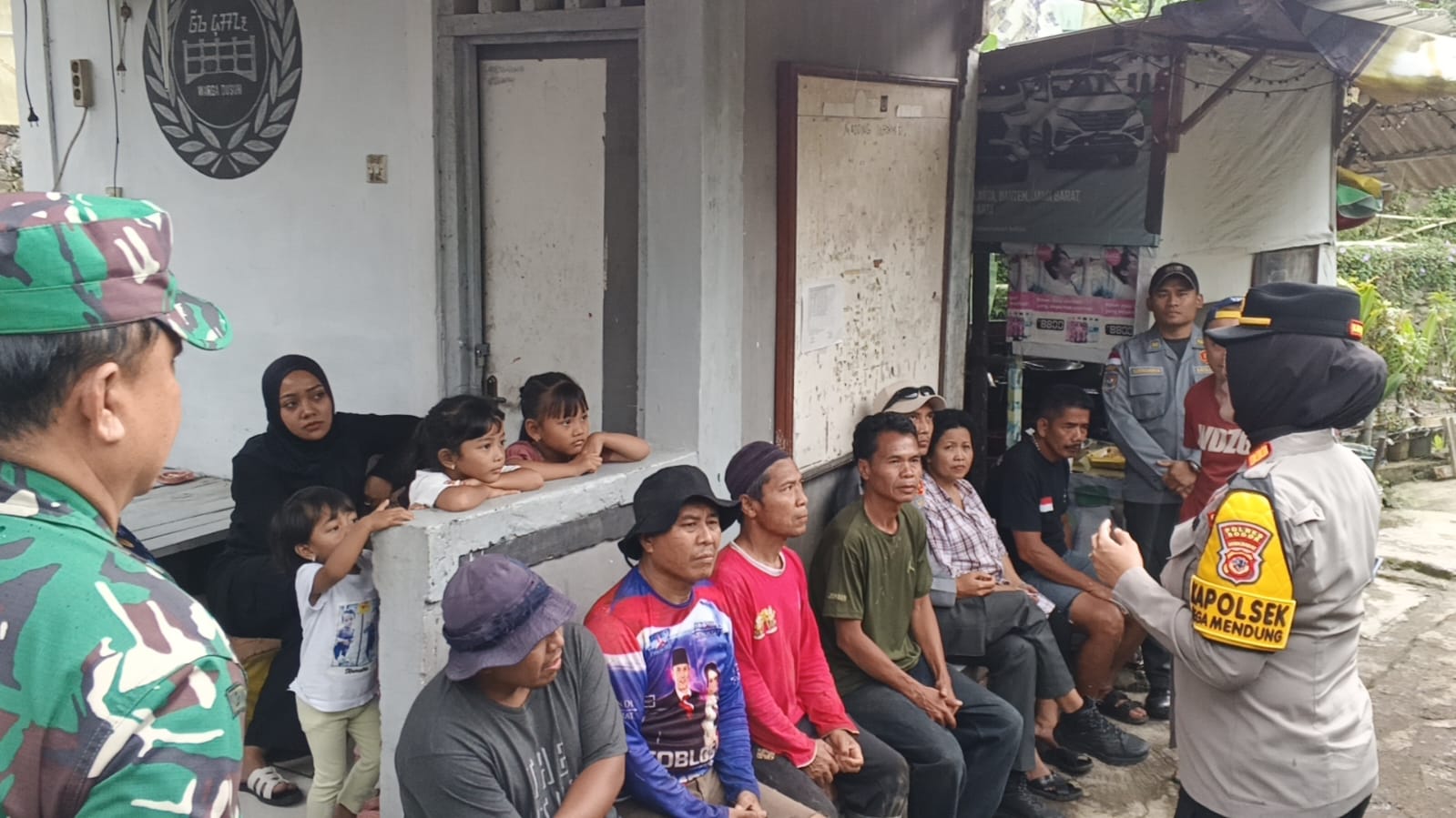 Bogor – Kapolsek Megamendung bersama Bhabinkamtibmas dan Babinsa Desa Megamendung melaksanakan kegiatan sosialisasi bencana kepada warga Kampung Rawa Sedek RT 01 RW 04 Desa Megamendung, Kecamatan Megamendung, Kabupaten Bogor, pada Senin, 11 Agustus 2025, sekitar pukul 13.00 WIB.