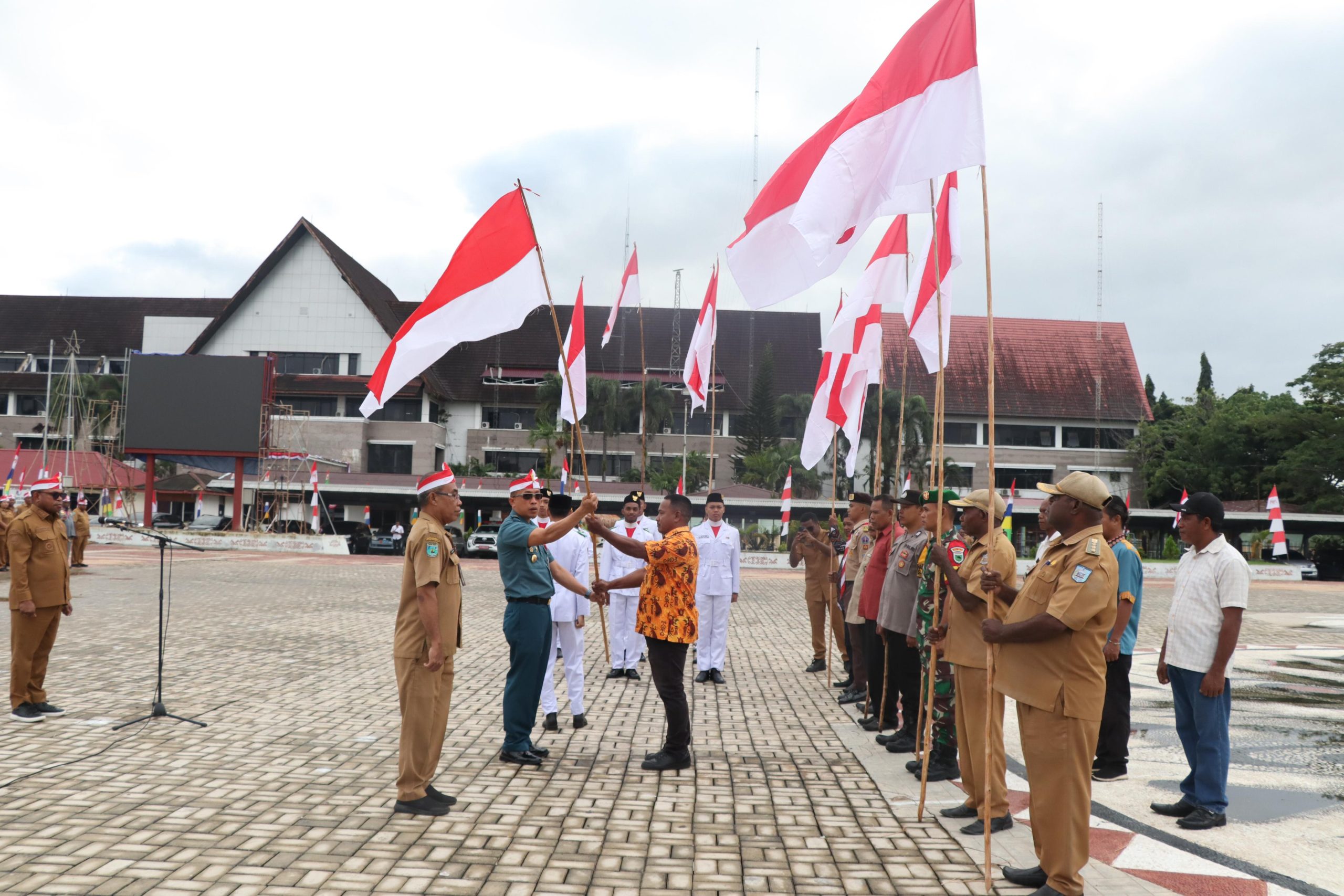 Kegiatan Gerakan Pembagian Bendera Merah Putih dipimpin langsung oleh Walikota Sorong, Septinus Lobat, S.H., MPA. Acara ini dihadiri oleh Forum Koordinasi Pimpinan Daerah (Forkopimda) Papua Barat Daya, perwakilan TNI-Polri, tokoh adat, serta anggota Pramuka dan berbagai organisasi masyarakat. Sebanyak 3.729 bendera Merah Putih akan dibagikan kepada seluruh masyarakat Kota Sorong. Kegiatan ini bertujuan untuk menggugah semangat nasionalisme dan memperkuat rasa cinta tanah air di seluruh lapisan masyarakat, khususnya menjelang perayaan HUT Kemerdekaan Republik Indonesia.
