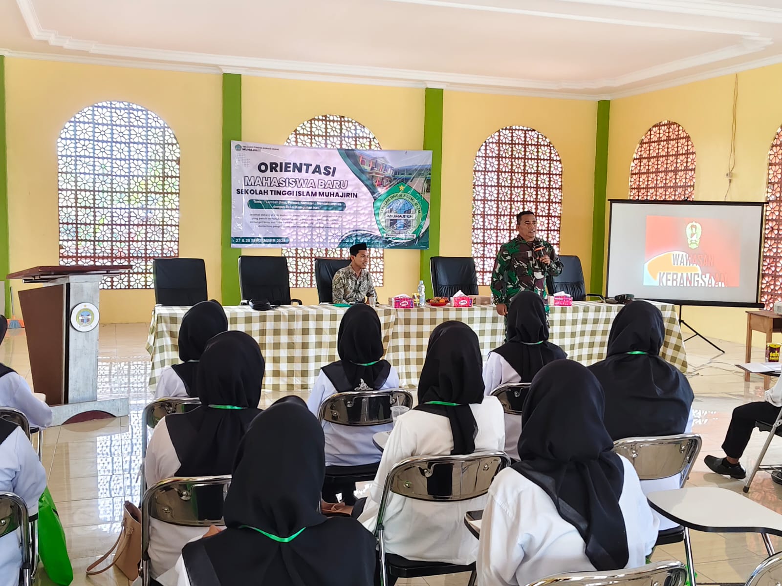 HULU SUNGAI TENGAH, BUSERJATIM.COM GROUP – Danramil 1002-08/Labuan Amas Utara (LAU) Kapten Inf Rudi Hartono memberikan materi Wawasan Kebangsaan kepada para mahasiswa Sekolah Tinggi Agama Islam (STAI) Muhajirin di Desa Pemangkih Seberang, Kecamatan Labuan Amas Utara, Sabtu (27/9/2025).