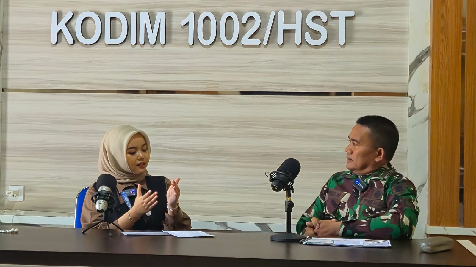 Dalam kegiatan tersebut, Pasipers Kodim 1002/HST Kapten Inf Rudi Hartono hadir sebagai narasumber utama, didampingi perwakilan Kominfo HST, Fazriatul Shahadatun Najmi (Nana), yang memandu jalannya dialog. Podcast ini disiarkan secara daring sebagai upaya memberikan informasi seluas-luasnya kepada masyarakat, khususnya generasi muda yang berminat menjadi prajurit TNI.