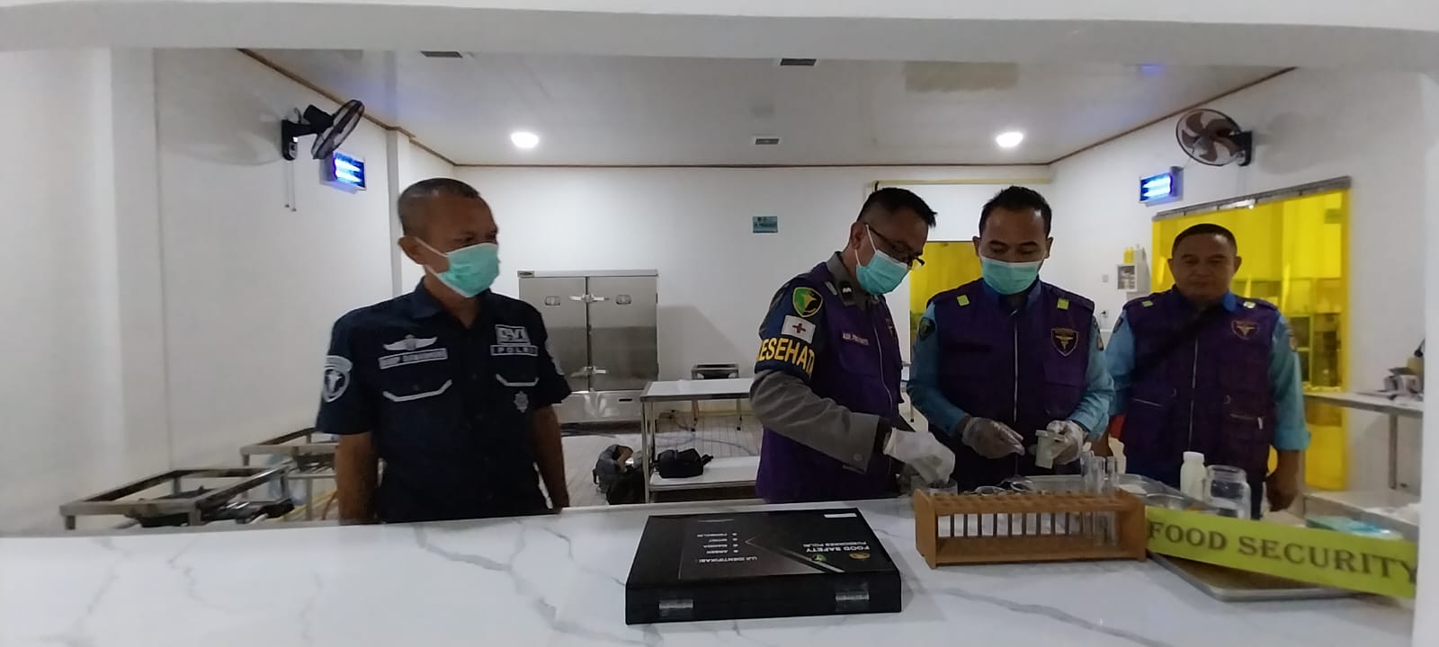 Tim medis dari Rumkit Bhayangkara melakukan serangkaian pemeriksaan terhadap bahan baku, proses pengolahan, hingga makanan siap saji.