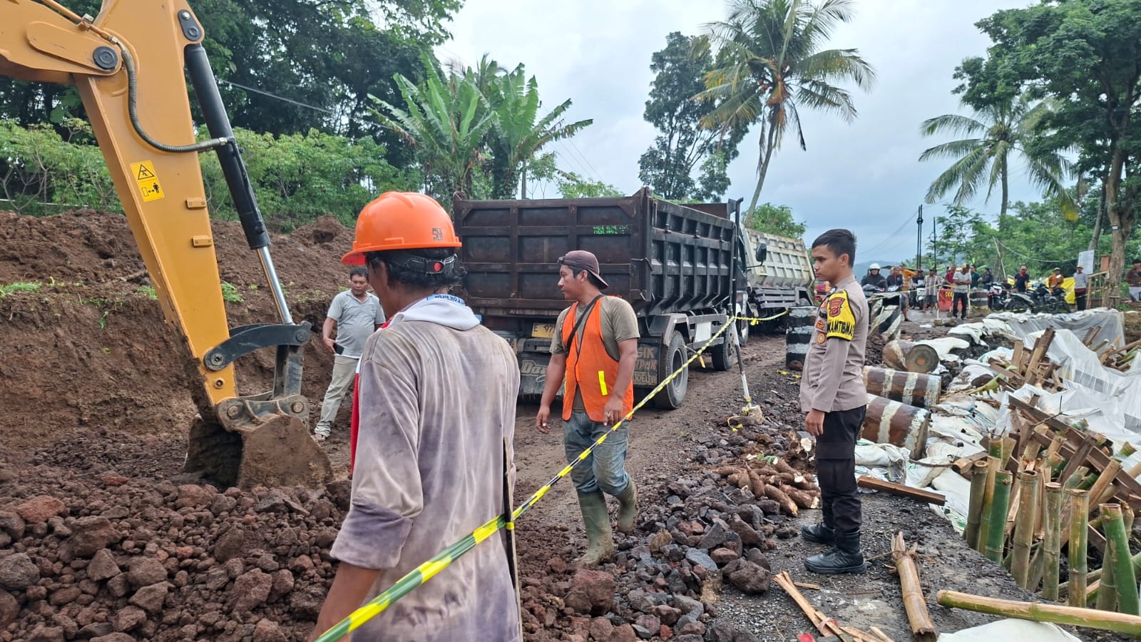 Kegiatan tersebut dilaksanakan oleh Aipda Ade Indra Safari, S.Kep bersama Bhabinkamtibmas Briptu Bagas Farhan Taab dengan melakukan pemantauan situasi sekaligus membantu mengatur arus kendaraan agar tetap tertib dan aman selama proses perbaikan jalan berlangsung.