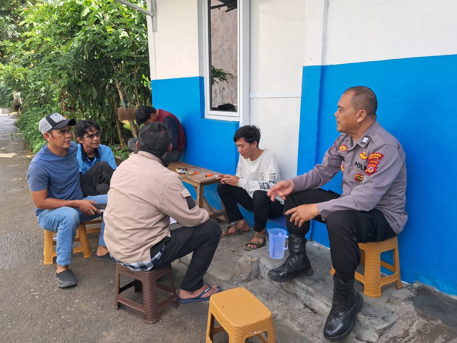 Seperti halnya yang dilakukan Bhabinkamtibmas Desa Dramaga Polsek Dramaga Aiptu Endang SM menyambangi warga yang sedang duduk-duduk santai dan ngobrol , pada kesempatan yang baik tersebut Bhabinkamtibmas menyampaikan pesan-pesan kamtibmas dan Mengajak masyarakat untuk meningkatkan kewaspadaan serta untuk bersama-sama ikut serta dalam menjaga keamanan lingkungan guna mencegah terjadinya gangguan kamtibmas.