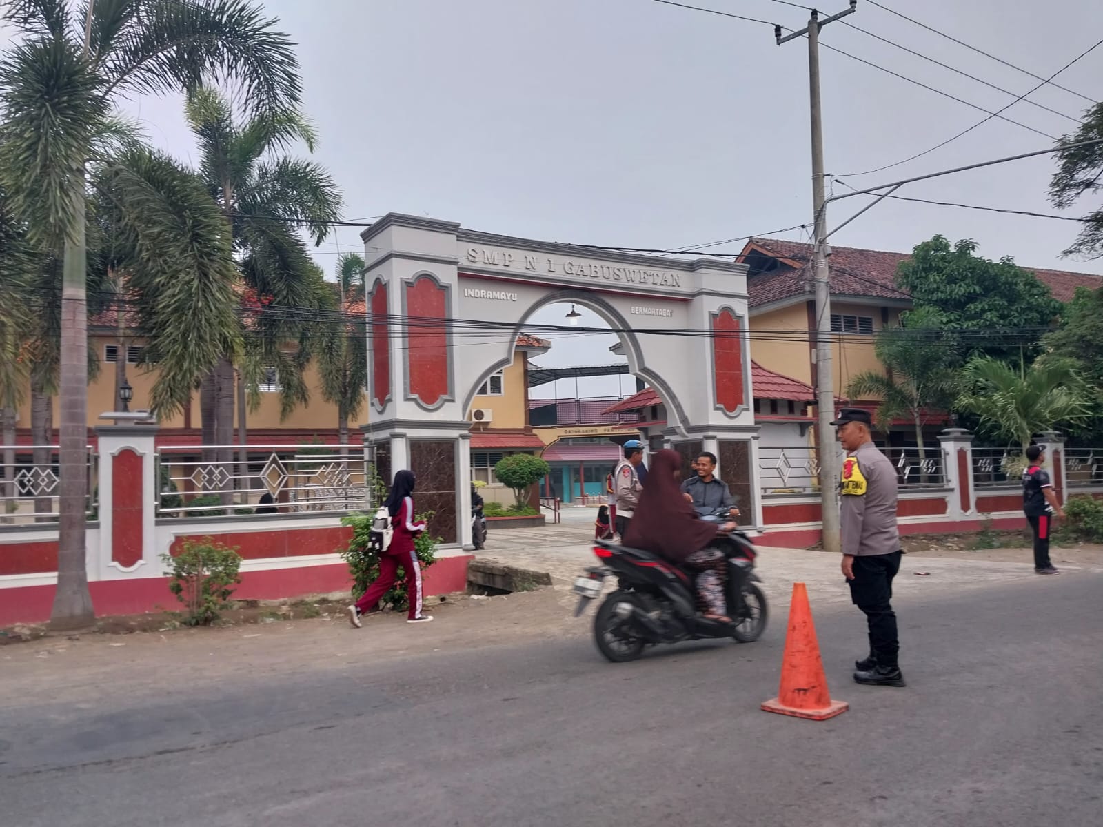 Indramayu – Personel Polsek Gabuswetan, Polres Indramayu, melaksanakan kegiatan pengaturan lalu lintas (Gatur Pagi) pada Jum’at (19/12/2025) sekitar pukul 06.00 WIB di depan SMPN 1 Gabuswetan, Kecamatan Gabuswetan, Kabupaten Indramayu.