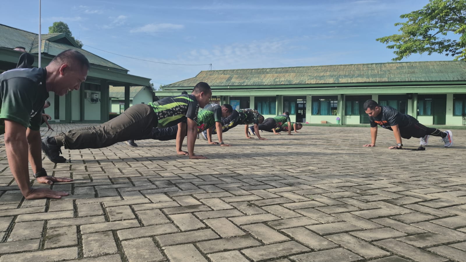 Olahraga diawali dengan apel pagi dan dilanjutkan dengan pemanasan bersama, senam serta olahraga ringan yang diikuti oleh seluruh anggota dengan penuh semangat dan antusias.