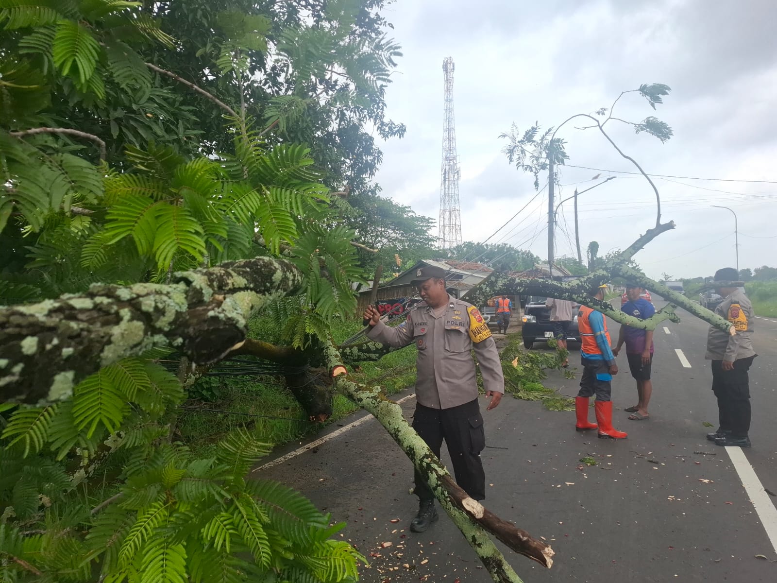 Indramayu – Personel Polsek Tukdana Polres Indramayu Polda Jawa Barat bergerak cepat melakukan evakuasi pohon tumbang yang menghalangi arus lalu lintas di Jalan Raya Desa Bodas, Kecamatan Tukdana, Kabupaten Indramayu, Jumat (23/1/2026) kemarin.