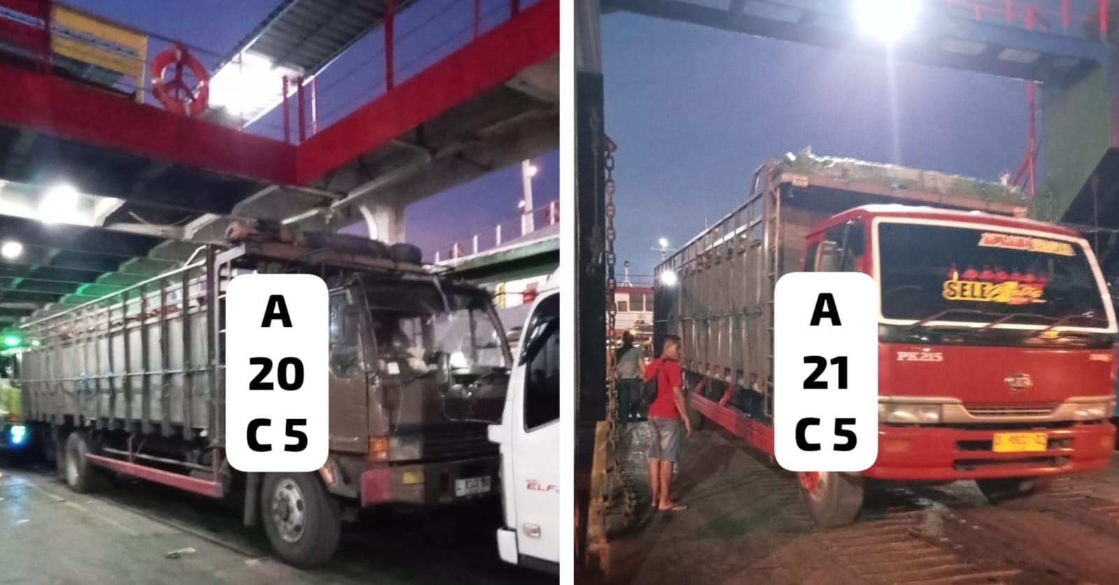 Menurut keterangan sumber tersebut, truk pertama berwarna cokelat dengan kode A 20, C 5, diduga mengangkut sekitar lima ekor sapi Bali betina. Sementara truk kedua berwarna merah dengan kode A 21, C 5, juga disebut membawa sekitar lima ekor sapi Bali betina.