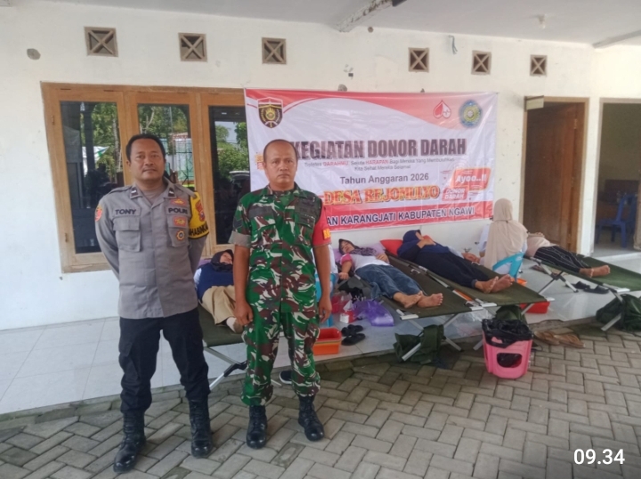 NGAWI, BUSERJATIM.COM GROUP – Kegiatan sosial berupa donor darah dan penyaluran bantuan sembako digelar di Kantor Desa Rejomulyo, Kecamatan Karangjati, Kabupaten Ngawi. Acara ini mendapat pendampingan langsung dari Babinsa Koramil Karangjati, Kodim 0805/Ngawi, Serka Ali, bersama Bhabinkamtibmas setempat. Selasa (28/4/2026).